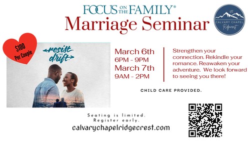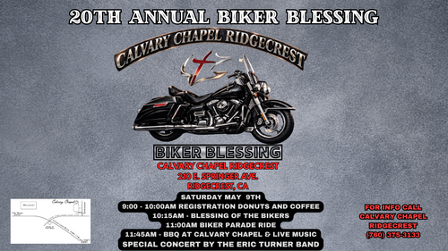 Calvary Chapel Ridgecrest has as its vision Ephesians 4:12, “...for the equipping of the saints for the work of ministry, for the edifying of the body of Christ,...“. We believe that God has called us to equip believers to become faithful ministers of God’s Word and love. We also believe that God has called us to become faithful servants to those in need both within the body of Christ and in the world. Therefore we put a great emphasis on learning to apply the Word of God in very practical ways in our everyday life and circumstances. We invite you to come join us when you are in our area. Until then, may God richly bless you.