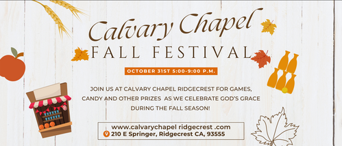 Family Fall Festival – An outreach ministry is to those who live in and around the Indian Wells Valley, held annually on October 31st. On a night that is becoming increasingly more dangerous for us to let our children go door to door accepting candy and treats from strangers, Calvary Chapel has been blessed with the opportunity to provide a fun and safe environment for the whole family to enjoy by providing an alternative to the traditional Halloween Trick or Treat practices. The FFF has everything the family needs for a fun-filled night.
